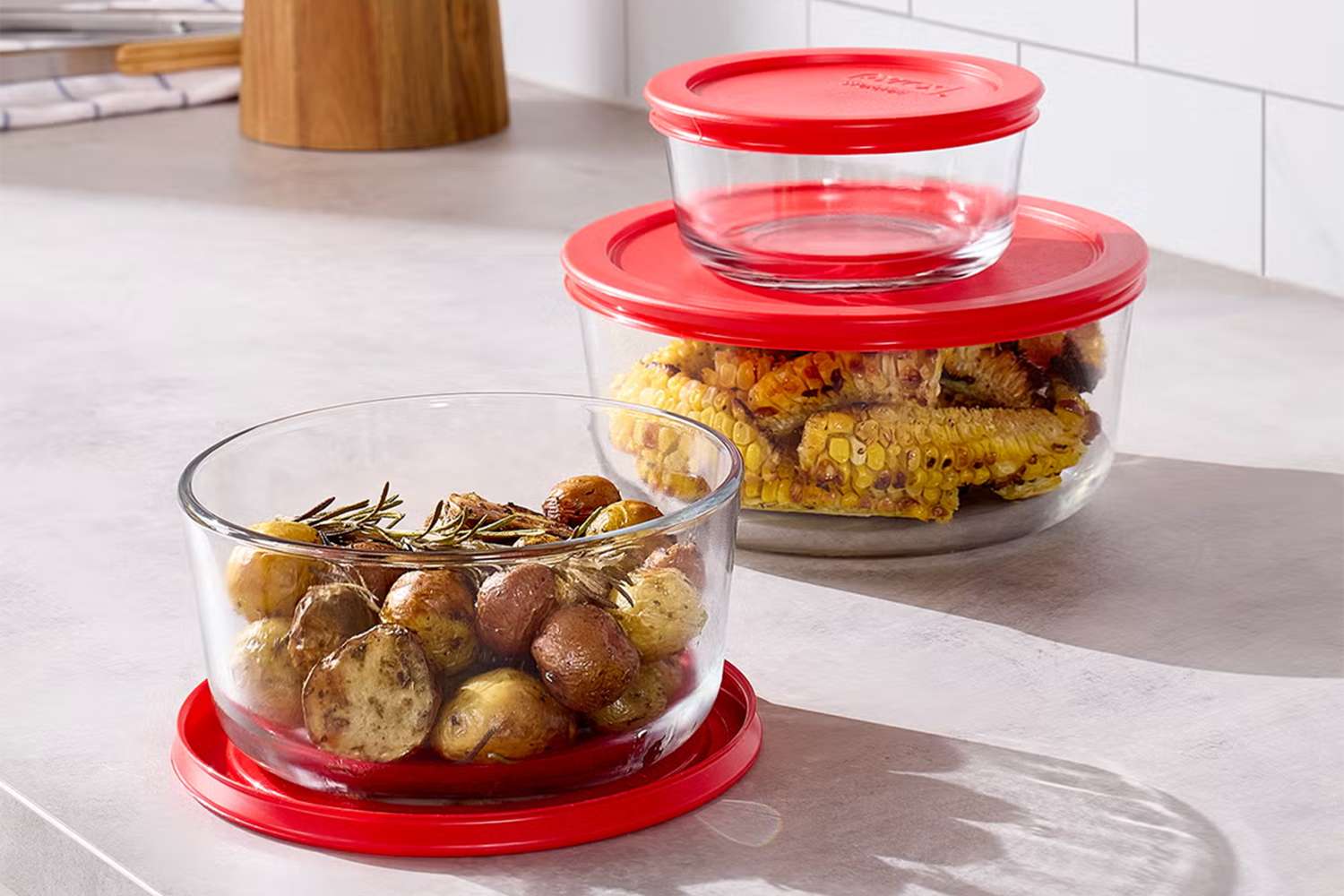 - Pyrex Simply Store Glass Food Storage Set, $24 (was $32) at containerstore.com