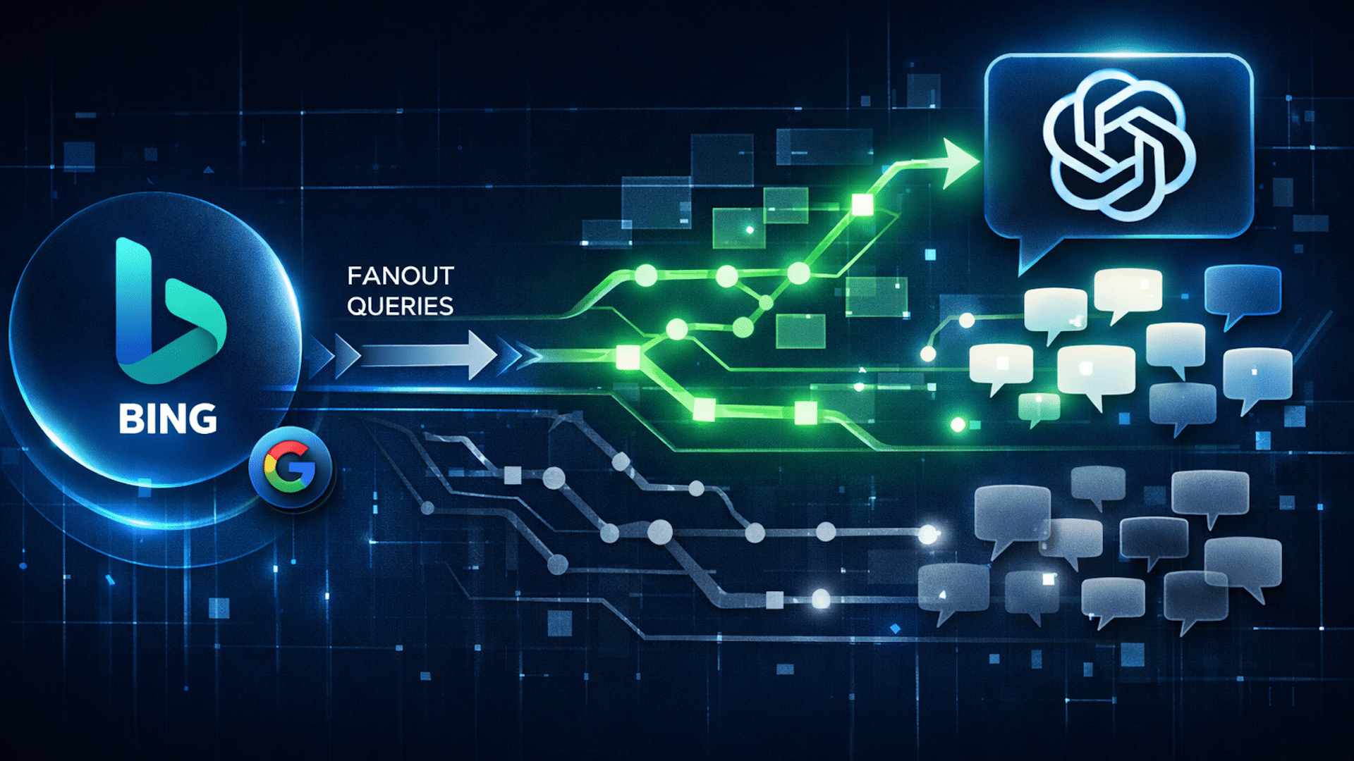 • Brand ranks in Bing → ChatGPT fanouts pull in Bing pages → ChatGPT synthesizes training and Bing data to generate mentions