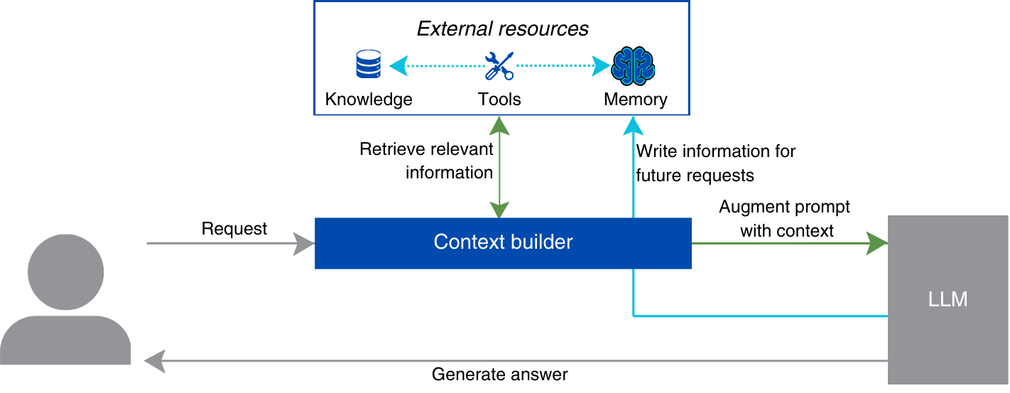 To reduce complexity, so far, we made a clear split between the three components of an efficient context — knowledge, tools, and memory. In practice, they will interact with each other, especially as your system matures: